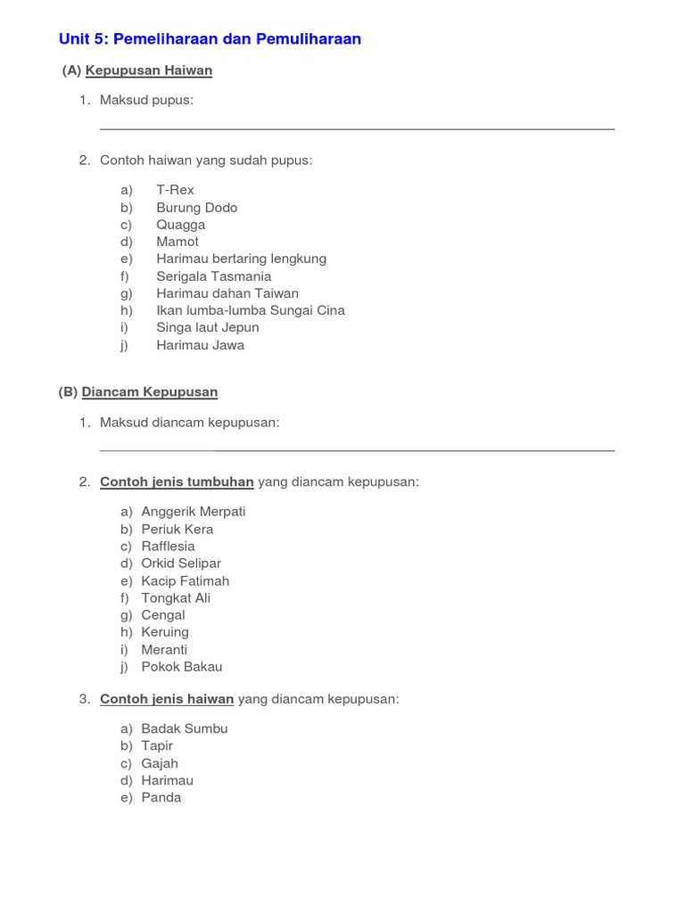 Kepupusan haiwan dan tumbuhan kepupusan: Interaksi antara kehidupan unit 5: Nurul nazirah bt darus dzulkarnain. Añadir a mis cuadernos (0) descargar archivo pdf insertar en mi web o blog añadir a. Peraturan bilik sains unit 3: